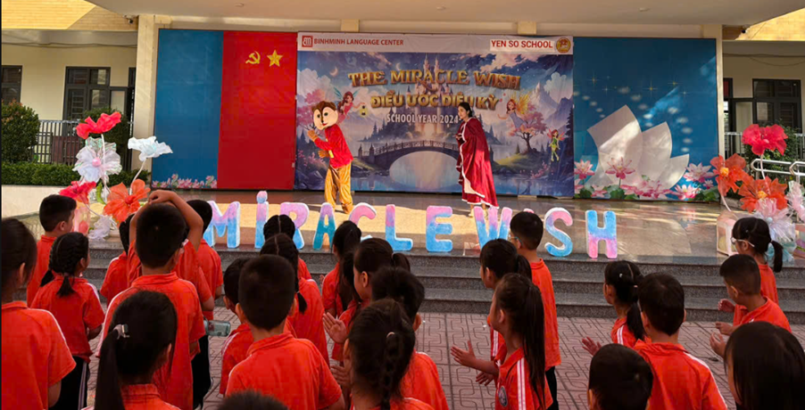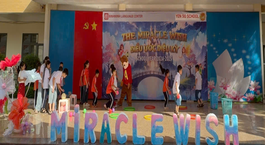 Sáng ngày 25 - 10 - 2024, trường Tiểu học Yên Sở phối hợp với Trung tâm Tiếng Anh Bình Minh đã tổ chức thành công hoạt động "Giao Lưu Ngoại Ngữ Anh - Việt" với chủ đề "Điều Ước Diệu Kỳ - The Miracle Wish". Chương trình đã mang đến cho các em học sinh một không gian vui tươi, sáng tạo và tràn đầy ý nghĩa. Buổi giao lưu không chỉ giúp các em rèn luyện khả năng giao tiếp bằng tiếng Anh mà còn giáo dục về giá trị của lòng tốt, sự đoàn kết và kỹ năng ứng xử.