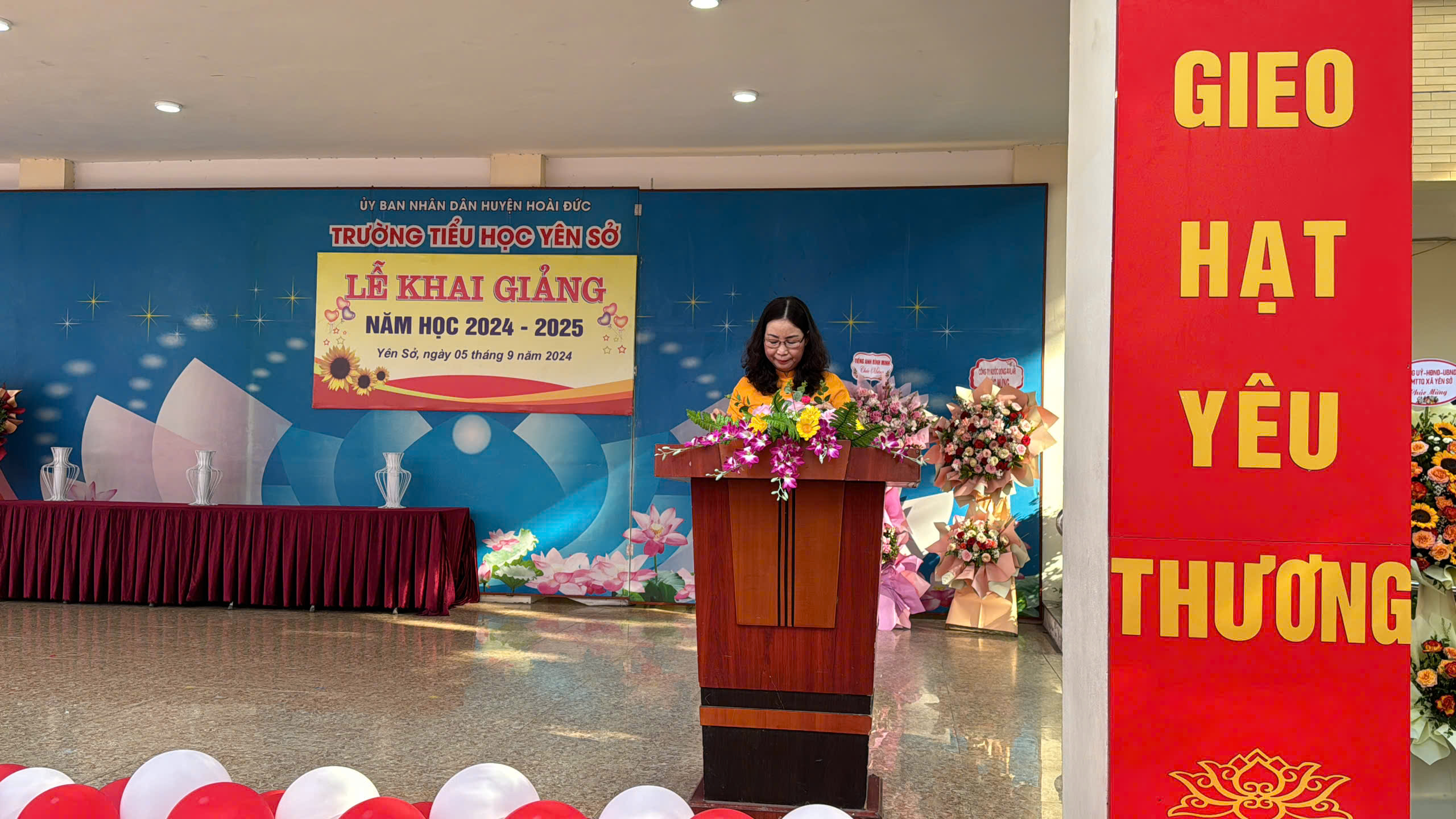 Đại diện Quỹ tín dụng, HTX nông nghiệp và Hội DN xã Yên Sở đến tham dự và có lẵng hoa chúc mừng nhà trường nhân ngày khai trường