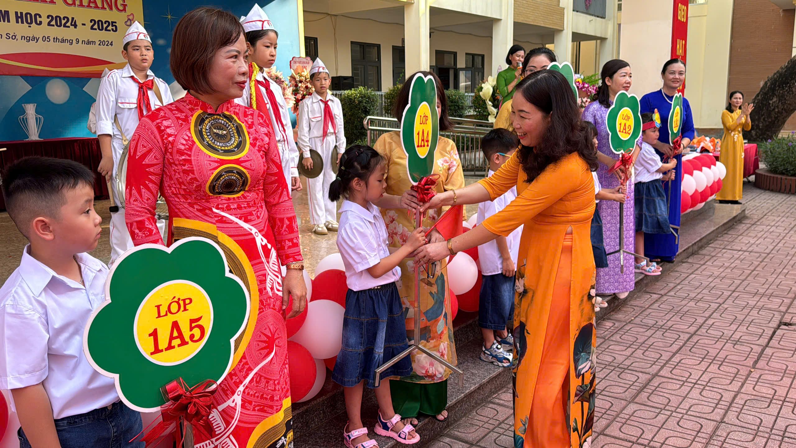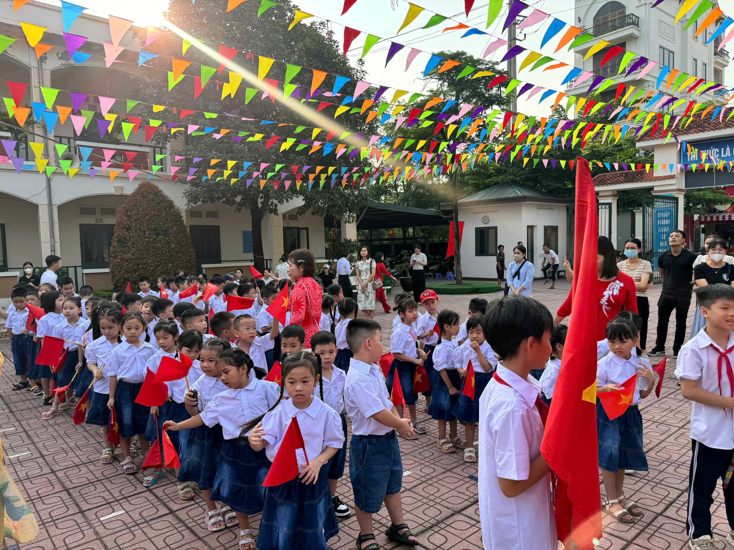 Mở đầu chương trình khai giảng là lễ đón các em học sinh lớp 1, ngày đầu tiên cắp sách tới trường. và lễ trao biển tên cho các lớp.