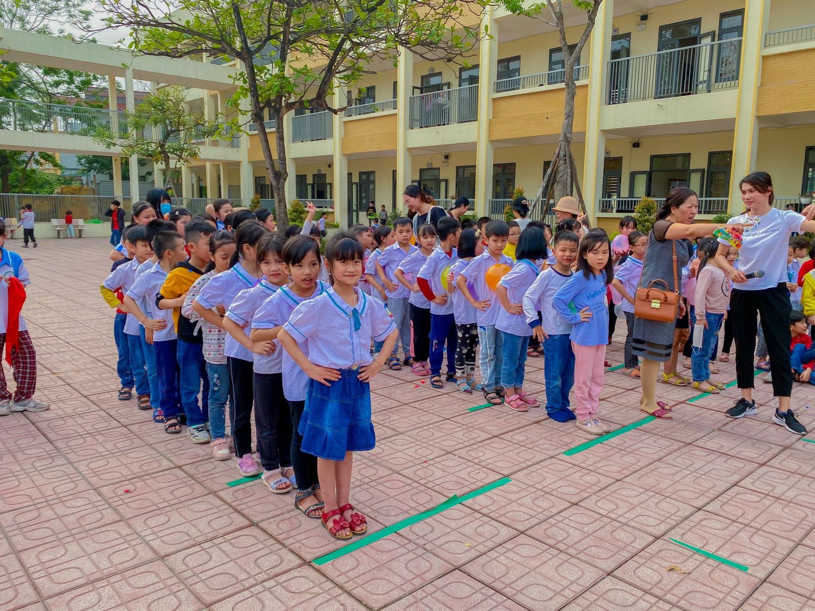 Các em học sinh khối 1 chơi trò “Pháo nổ”