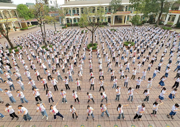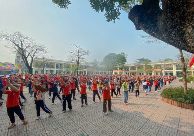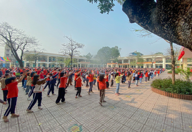 Ngoài ra, thể dục buổi sáng còn giúp các em học sinh cảm thấy vui vẻ, thoải mái, đồng thời tăng cường tinh thần đoàn kết, sự phối hợp nhịp nhàng giữa các bạn trong lớp. Qua đó, học sinh không chỉ phát triển thể chất mà còn rèn luyện được tính kỷ luật và tinh thần tập thể. Khi tham gia vào các hoạt động thể thao, các em học được cách làm việc nhóm, tôn trọng bạn bè và xây dựng tinh thần hợp tác.