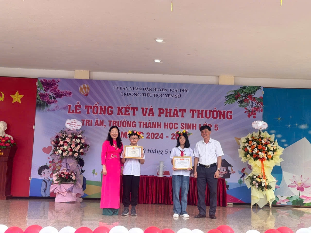 Hôm nay ngày 30/5/2025 được sự nhất trí và tạo điều kiện của lãnh đạo các cấp, trường TH Yên Sở long trọng tổ chức lễ tổng kết, phát thưởng, tri ân và trưởng thành cho học sinh khối 5 niên khoá 2020 - 2025.