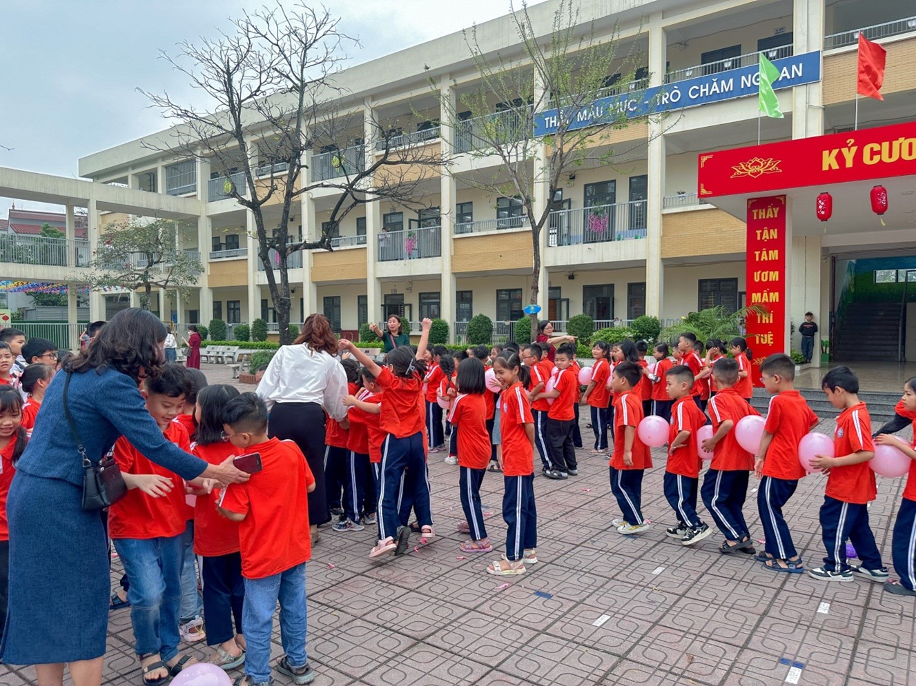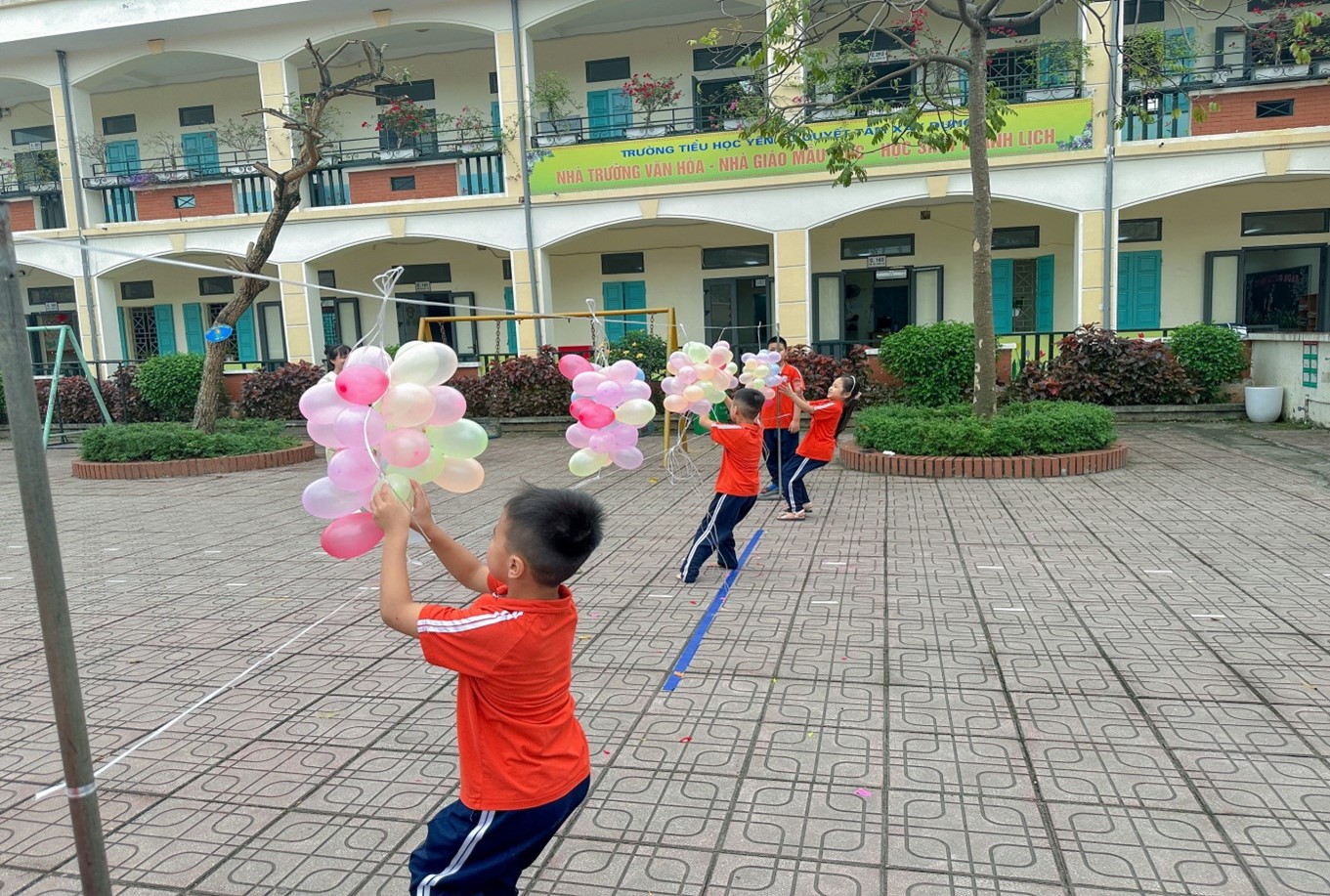 Học sinh khối 1 tham gia trò chơi “Pháo nổ”