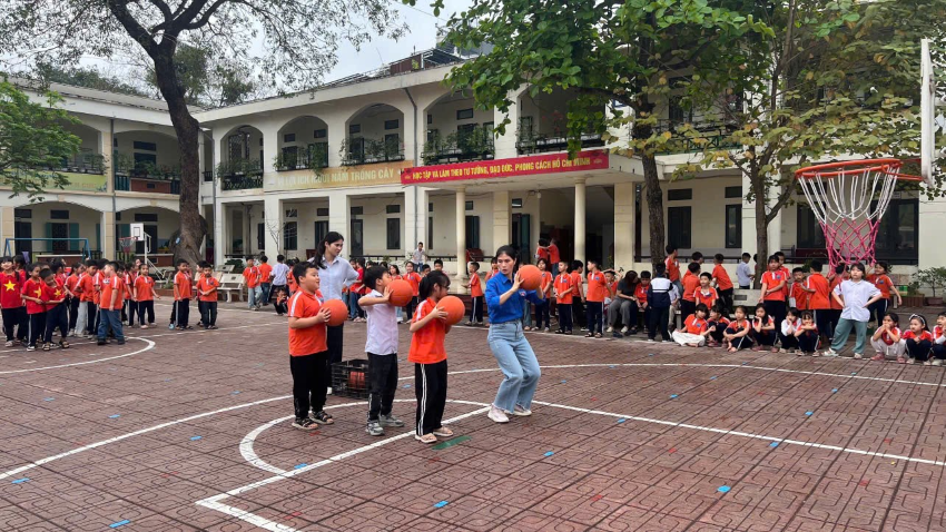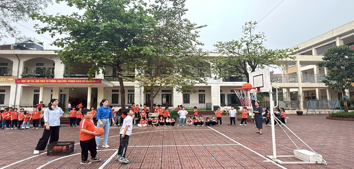 Khối 2 mang đến không khí sôi động với phần thi ném bóng rổ. Từng cú ném là sự kết hợp của sự tập trung, khéo léo và tự tin. Niềm vui vỡ òa khi bóng vào rổ không chỉ là thành quả mà còn là động lực để các em tin vào bản thân và không ngừng cố gắng.