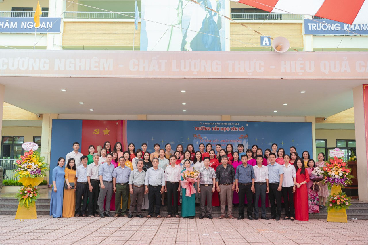 Với bản báo cáo cô đọng và giàu cảm xúc, cô giáo Nguyễn Thị Vân Anh - Bí thư Chi bộ, Hiệu trưởng nhà trường đã chỉ ra những điểm nổi bật của năm học đặc biệt này. Chúng ta đã cùng nhau đi qua một năm học với những kỉ niệm thật ấn tượng: Lễ Khai giảng trực tuyến đầu tiên; thời gian dạy và học trực tuyến kéo dài gần 7 tháng; những bài kiểm tra cũng bằng hình thức trực tuyến, … Trong tình hình khó khăn và đầy biến động đó, Ban giám hiệu cùng tập thể giáo viên, nhân viên, học sinh toàn trường đã nỗ lực không ngừng và đạt được nhiều thành tích đáng khích lệ. Toàn trường có 280 em hoàn thành xuất sắc nhiệm vụ học tập và rèn luyện; 547 em học sinh tiêu biểu, có thành tích vượt trội hoặc tiến bộ vượt bậc; 54 em được dự thi Trạng nguyên Tiếng Việt, 9 em dự thi Tiếng Anh IOE cấp thành phố và 3 em được lọt vào vòng thi toàn quốc được nhà trường biểu dương khen thưởng. Hội Cựu giáo chức xã Yên Sở đã dành tặng 5 suất học bổng cho 5 em học sinh tiêu biểu và vượt khó học tốt. Quỹ tín dụng và hợp tác xã nông nghiệp tặng 10 suất học bổng cho 10 em học sinh đạt thành tích xuất sắc trong học tập và rèn luyện. Đặc biệt Hội doanh nghiệp đã trao 30 phần quà cho 15 cán bộ, giáo viên, nhân viên và 15 em học sinh đạt thành tích xuất sắc, tiêu biểu trong phòng trào thi đua. Những cố gắng, nỗ lực đó đã được các cấp lãnh đạo địa phương ghi nhận, biểu dương và chúc mừng nhà trường.