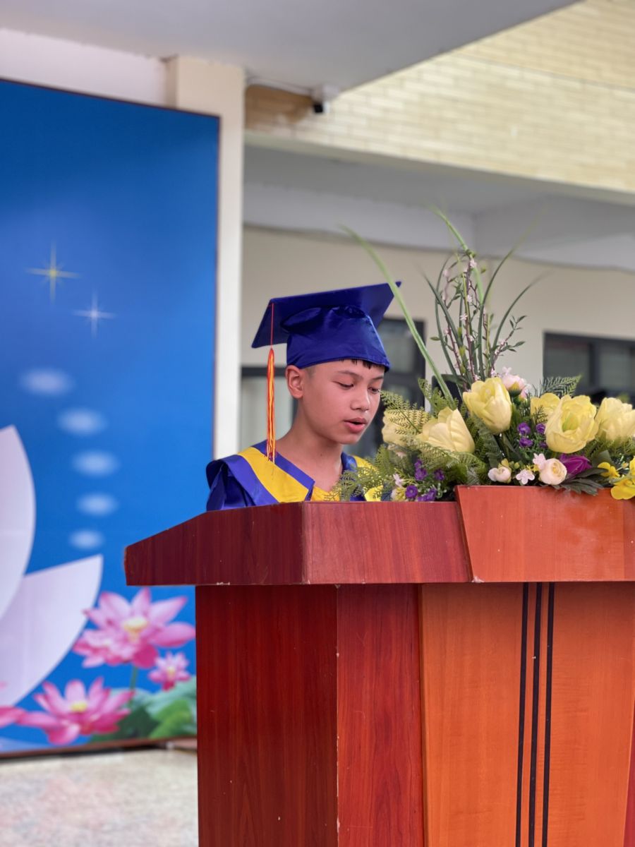 Vậy là từ hôm nay, 216 em học sinh lớp 5 đã trưởng thành, các em như những chú chim đủ lông đủ cánh, các em hãy tự tin bay cao, bay xa để chinh phục những chân trời tri thức mới. Chúc cho các em sẽ thành công trong tương lai để "Hôm nay các em tự hào về nhà trường, ngày mai nhà trường tự hào về các em".