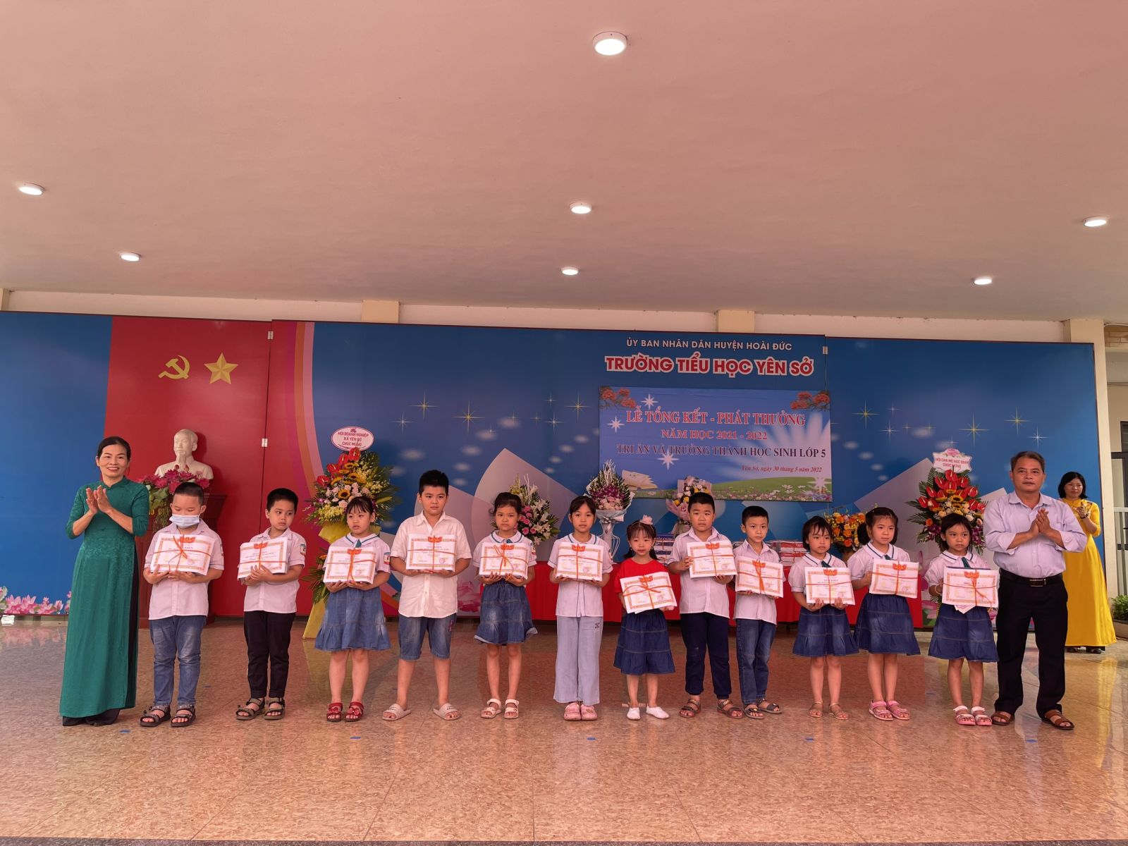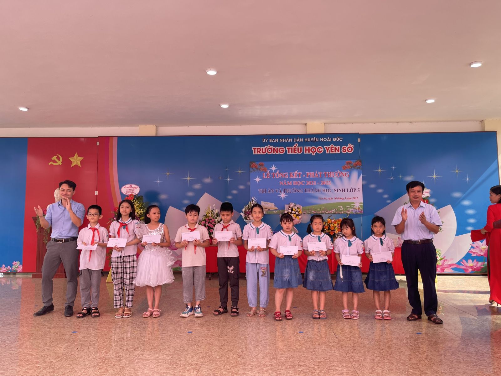 Sáng ngày 30/5, trường Tiểu học Yên Sở long trọng tổ chức lễ tổng kết, phát thưởng năm học 2021 - 2022, tri ân và trưởng thành cho học sinh khối 5 niên khóa 2017 - 2022. Thật vinh dự cho thầy và trò nhà trường khi được đón tiếp ông Nguyễn Tín Thành – Phó Bí thư đảng ủy xã Yên Sở, ông Nguyễn Trí Hồng Giang - Phó Chủ tịch Hội đồng nhân dân xã cùng các ông bà là cán bộ chuyên môn, đại diện các ban ngành đoàn thể trong xã, các ông bà đại diện BGH trường THCS, trường MN, Hội đồng Quản trị HTX nông nghiệp, Quỹ tín dụng nhân dân, Hội Doanh nghiệp, Hội Cựu giáo chức, Ban liên lạc Hội phụ huynh và đại diện cha mẹ học sinh khối 5.