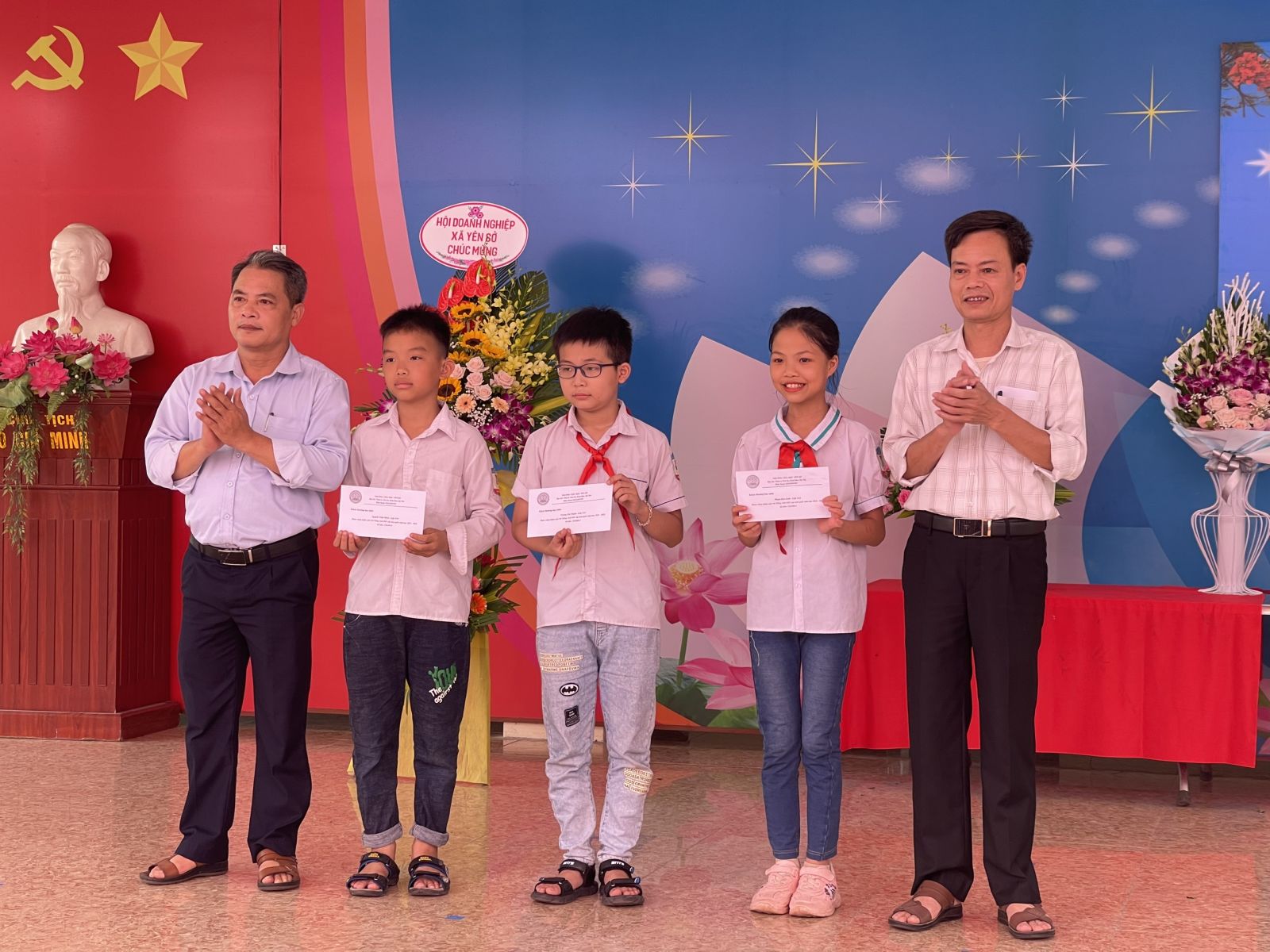 Các ban ngành đoàn thể trong xã trao thưởng cho cô và trò trường Tiểu học Yên Sở
