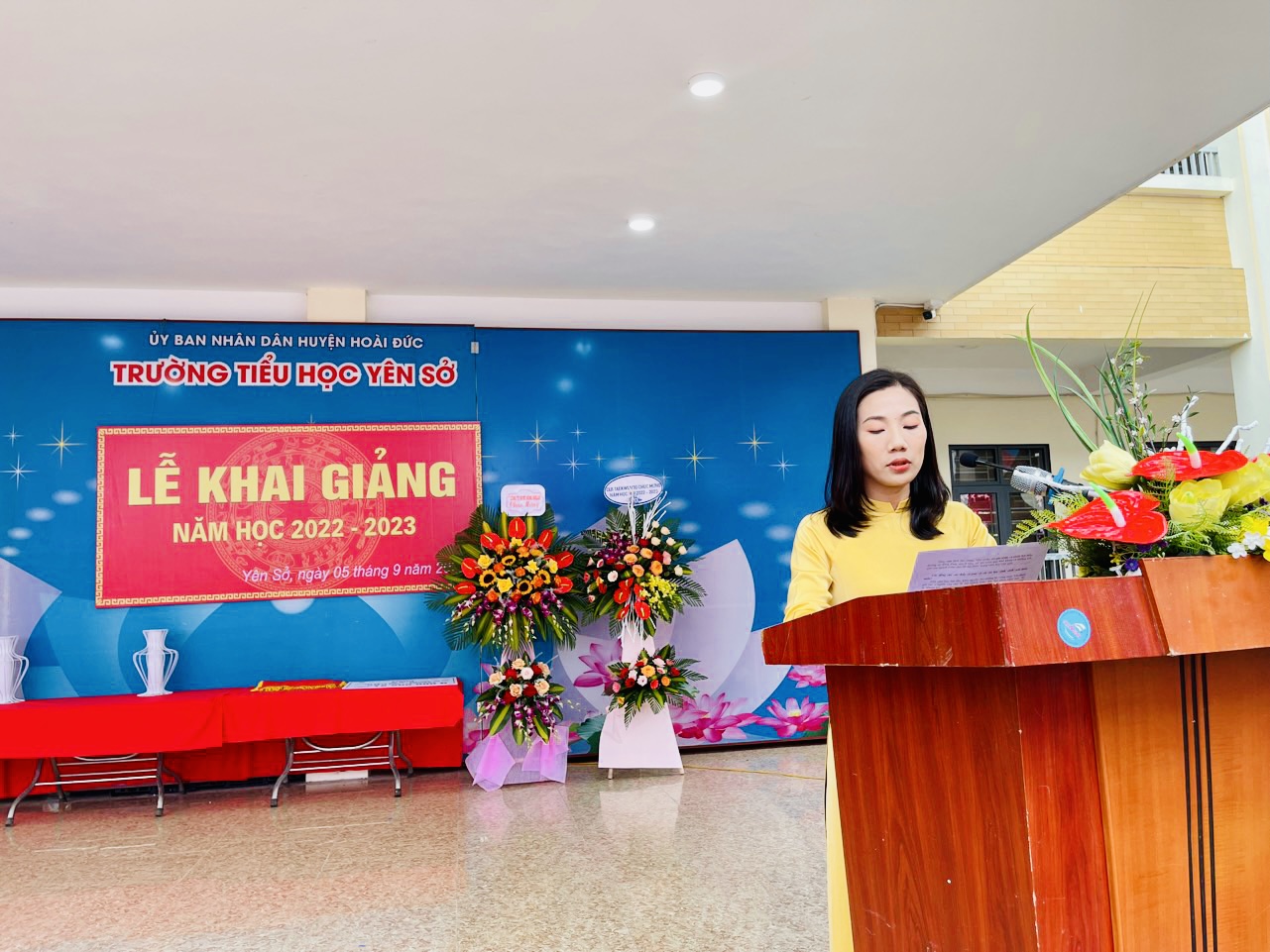 Hòa chung với không khí tưng bừng của cả nước kỉ niệm 77 năm Cách mạng tháng Tám và Quốc Khánh 2/9; hưởng ứng ngày toàn dân đưa trẻ đến trường. Thực hiện theo hướng dẫn của PGD&ĐT Hoài Đức, hôm nay ngày 05/9/2022 trường Tiểu học Yên Sở long trọng tổ chức Lễ khai giảng năm học 2022 – 2023.