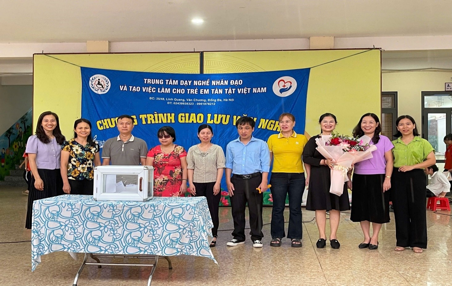 Buổi giao lưu diễn ra với sự tham gia của các cán bộ, giáo viên và các em học sinh trường Tiểu học Yên Sở. Các thầy cô giáo và các em học sinh được thưởng thức chương trình văn nghệ với thật nhiều cảm xúc qua những lời ca, tiếng hát khát khao cháy bỏng, khát vọng vươn lên của các em học sinh Trung tâm dạy nghề nhân đạo và việc làm cho trẻ em tàn tật Việt Nam. Mặc dù họ là những người tật nguyền, thiệt thòi, bất hạnh, khiếm khuyết về cơ thể nhưng trái tim và nghị lực của họ không hề khuyết tật, không khuất phục trước số phận, vẫn cố gắng vươn lên trong cuộc sống để tự mình khẳng định bản thân và hòa nhập với cộng đồng.