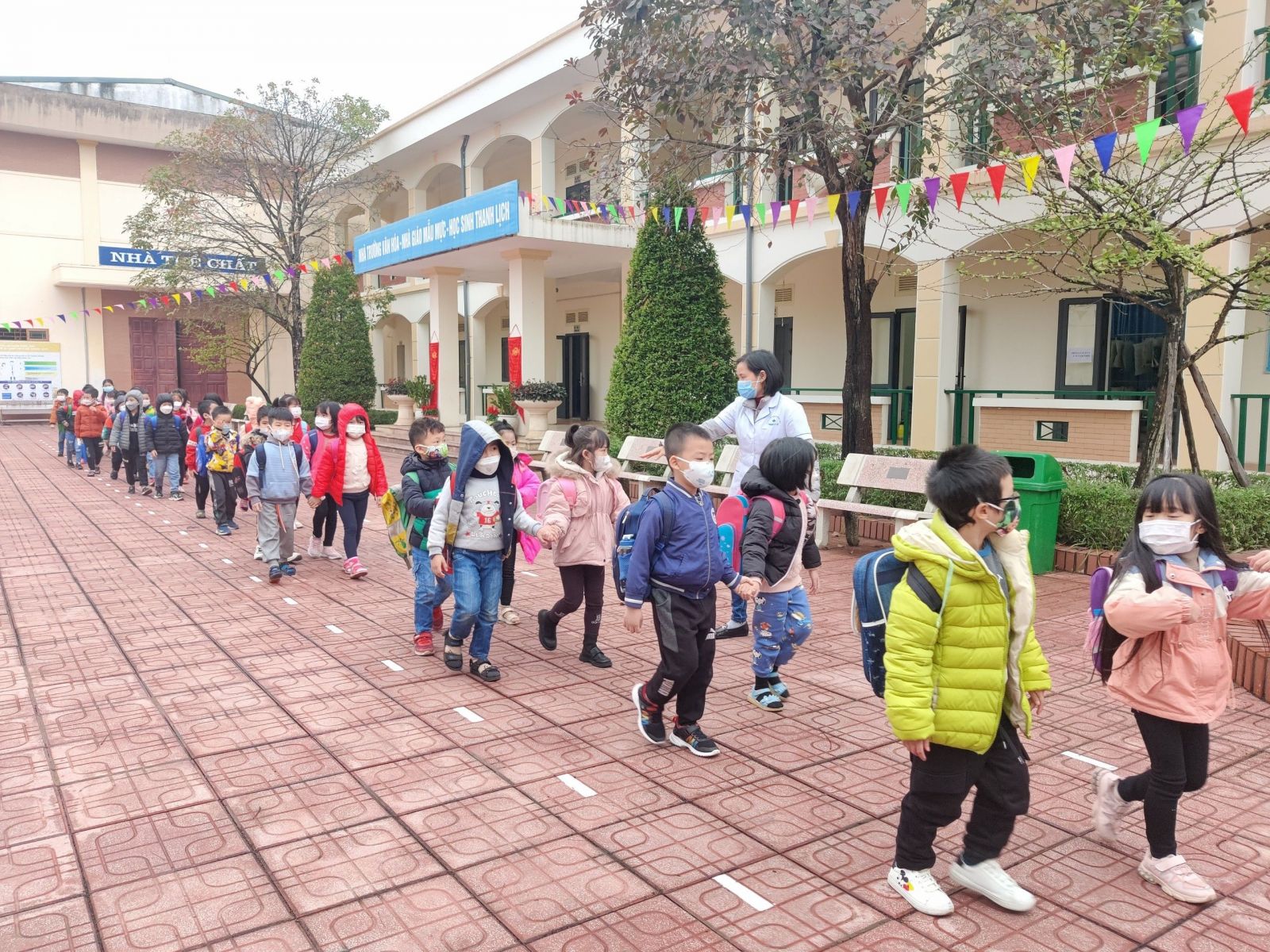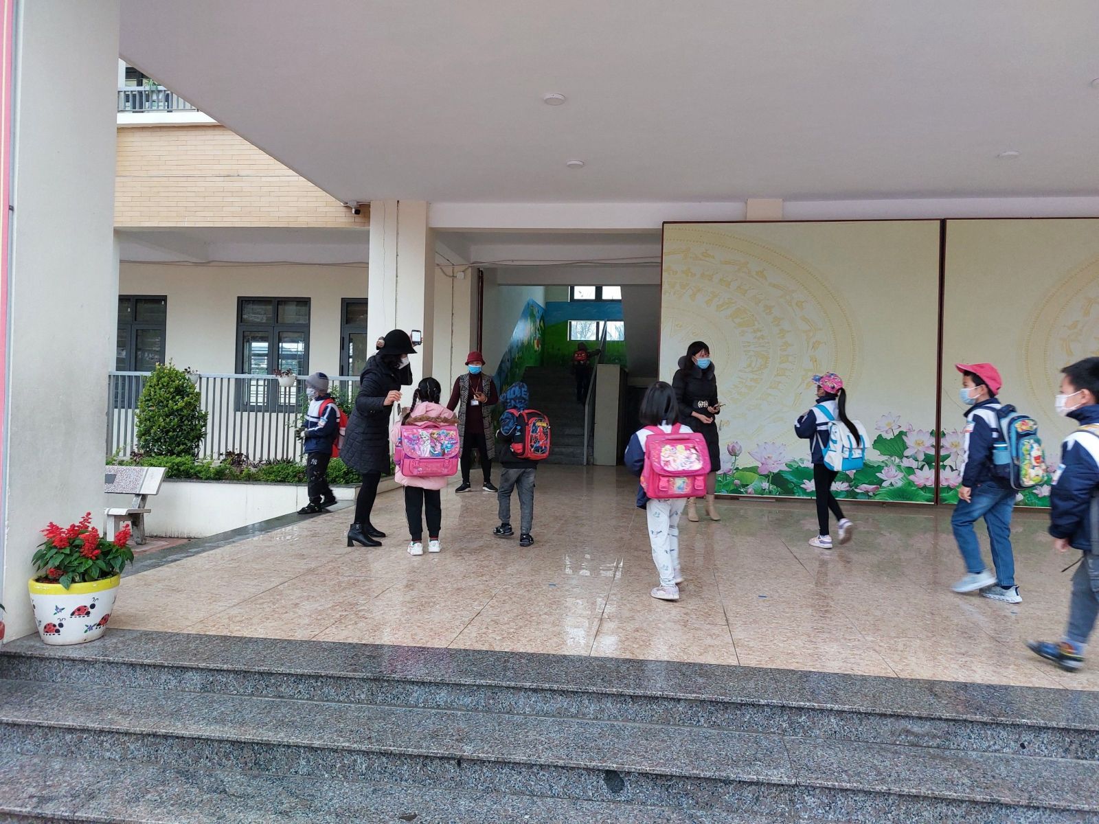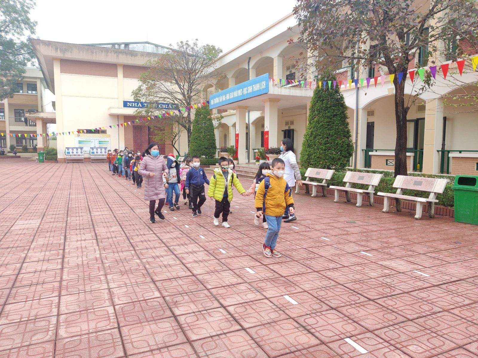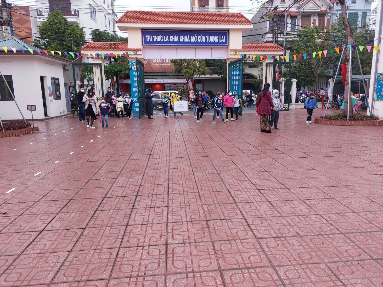 Kết thúc buổi học, các lớp xếp hàng ra về ngay ngắn, nghiêm túc theo luồng quy định và sự hướng dẫn của các cô giáo để đảm bảo công tác phòng, chống dịch bệnh. Phụ huynh học sinh cũng giúp đỡ, ủng hộ nhà trường, tuân thủ thông điệp 5K khi đón các con em mình, chấp hành tốt quy định về an toàn giao thông, để lại ấn tượng đẹp về mô hình cổng trường an toàn giao thông.