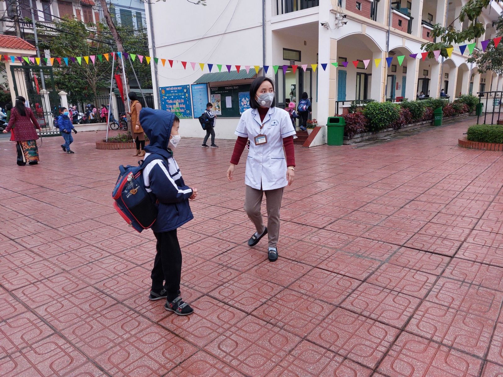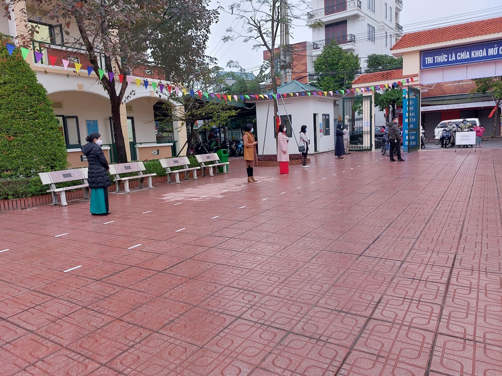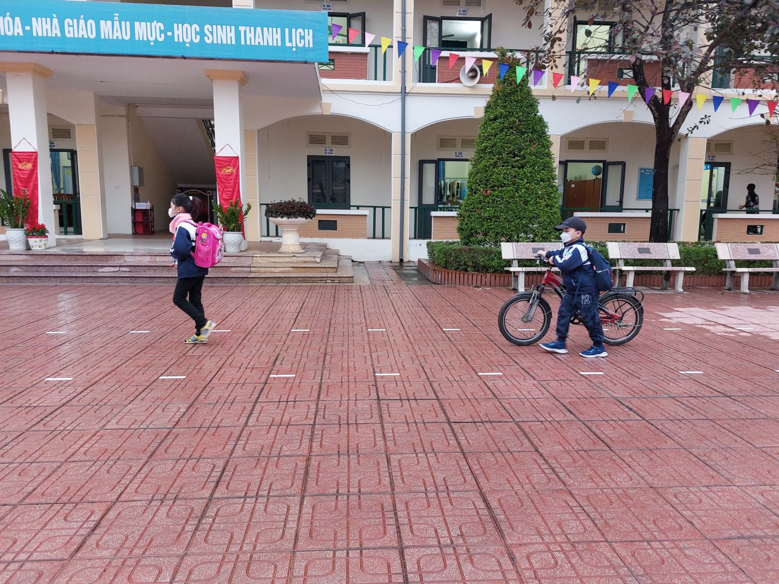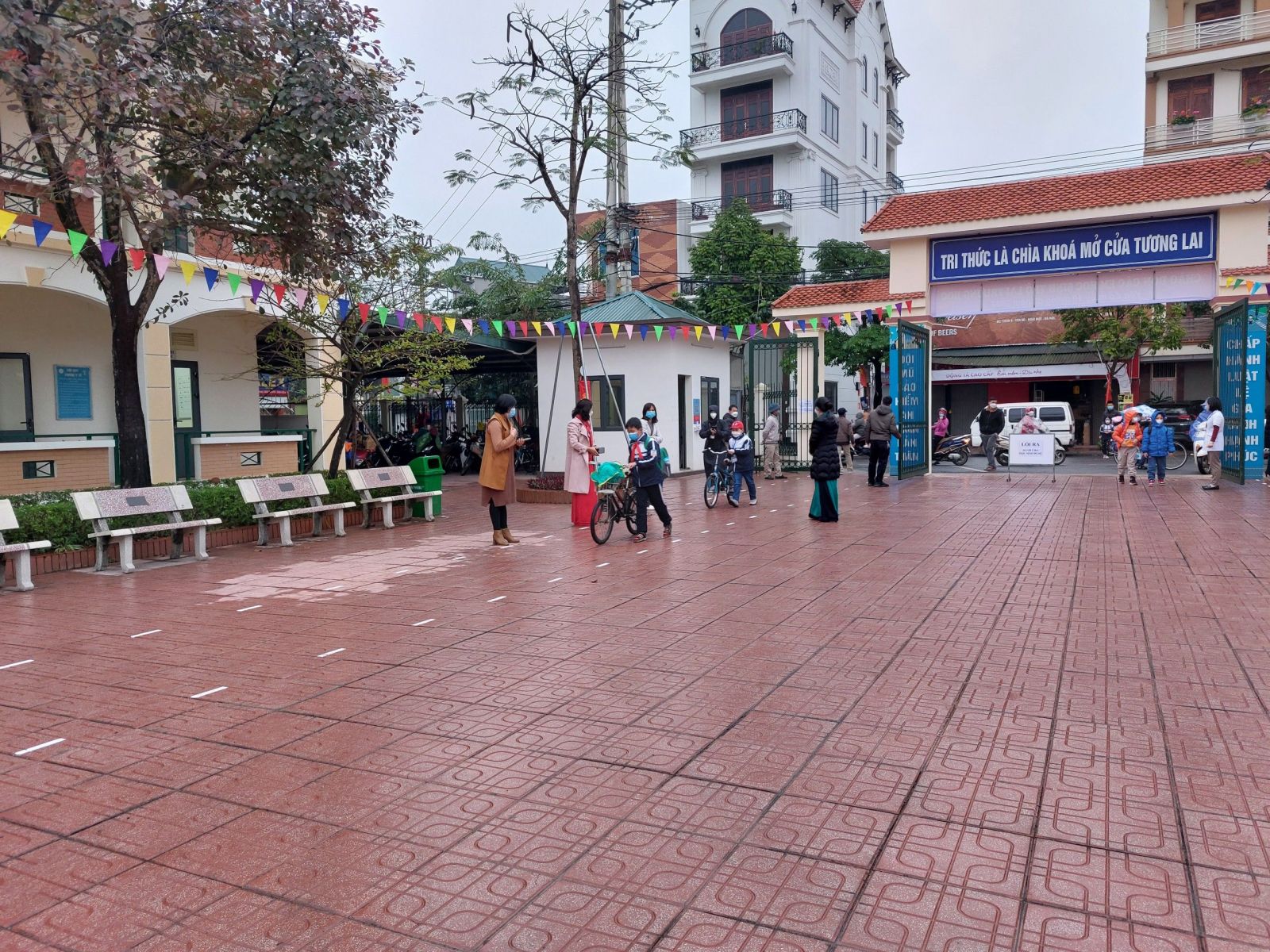 Kết thúc buổi học, các lớp xếp hàng ra về ngay ngắn, nghiêm túc theo luồng quy định và sự hướng dẫn của các cô giáo để đảm bảo công tác phòng, chống dịch bệnh. Phụ huynh học sinh cũng giúp đỡ, ủng hộ nhà trường, tuân thủ thông điệp 5K khi đón các con em mình, chấp hành tốt quy định về an toàn giao thông, để lại ấn tượng đẹp về mô hình cổng trường an toàn giao thông.