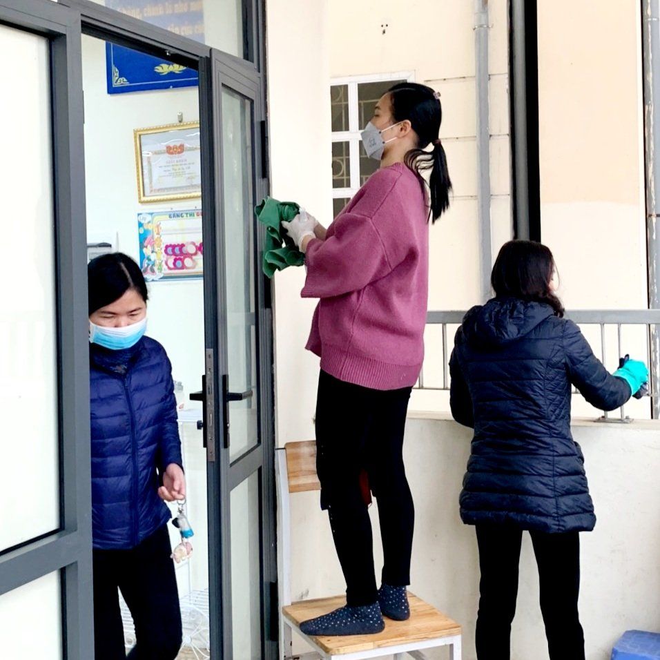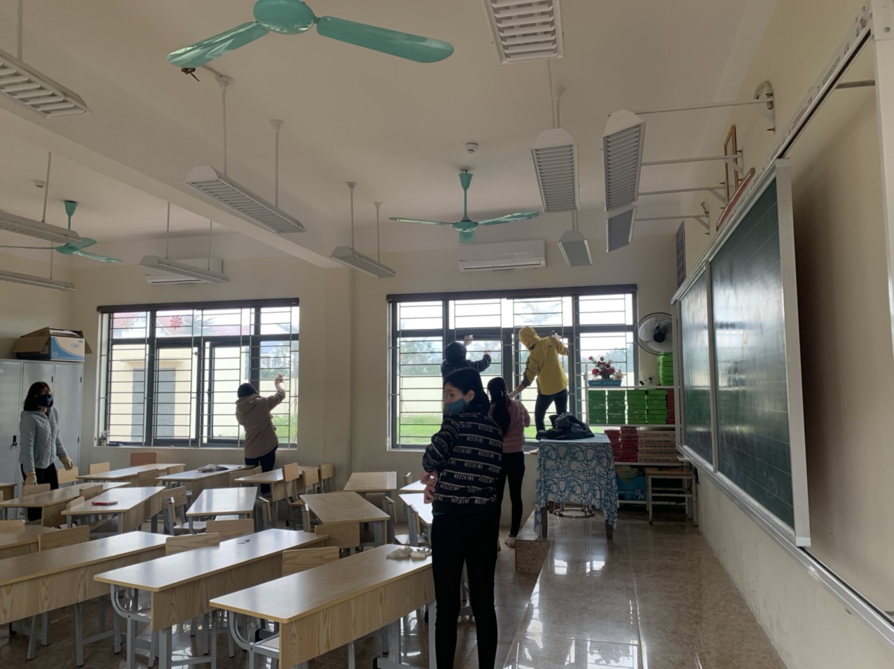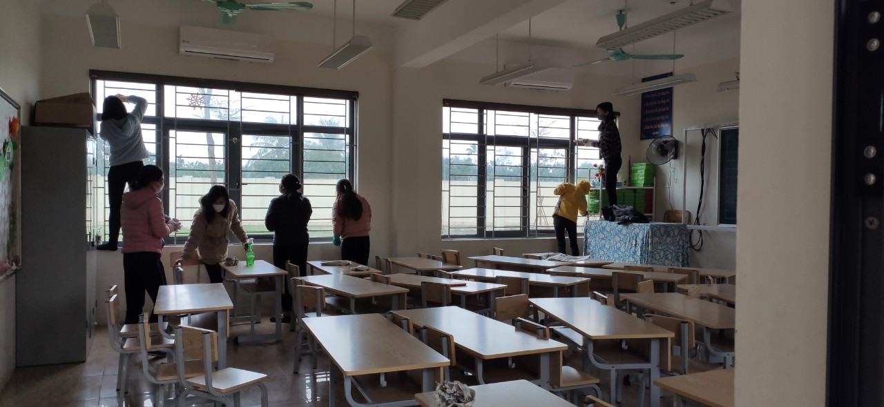 Một số hình ảnh CNGVNV-PH chuẩn bị CSVC, khử khuẩn phòng học để đón HS trở lại trường