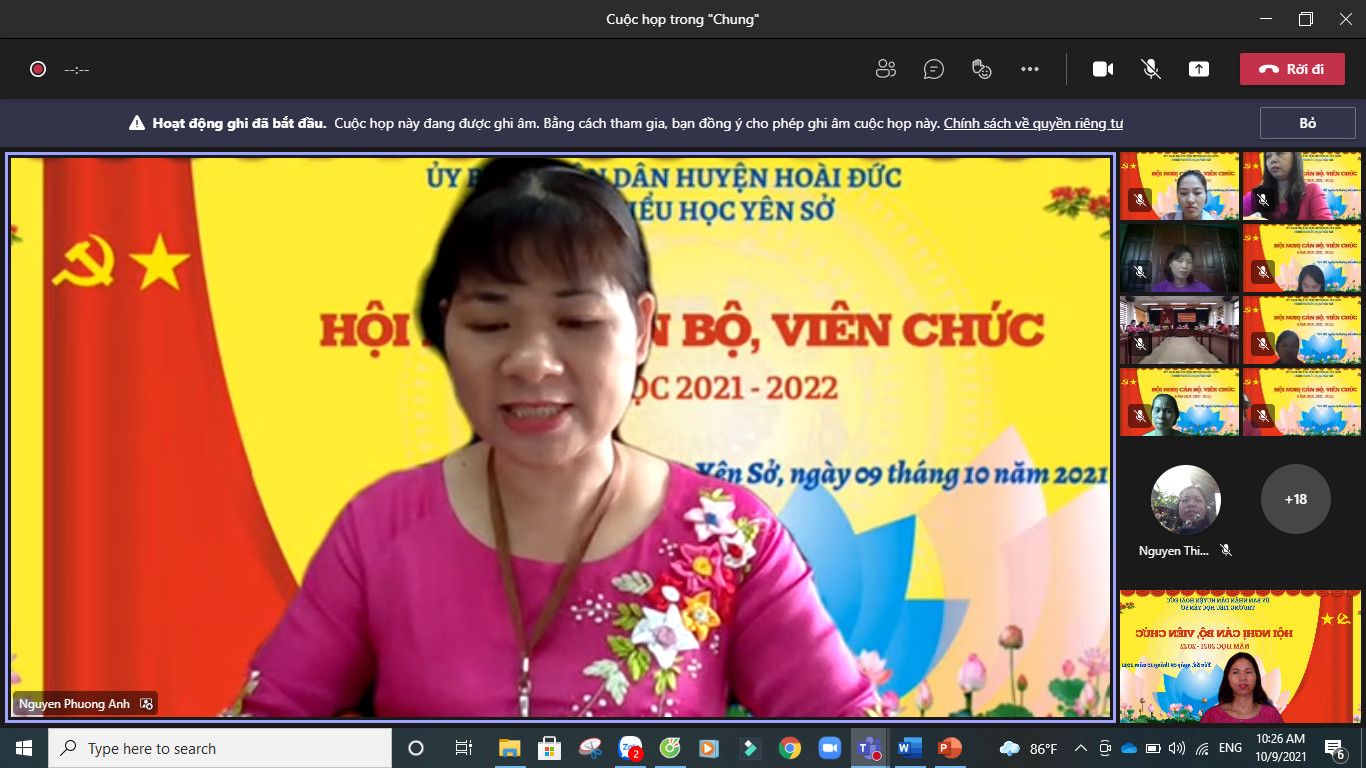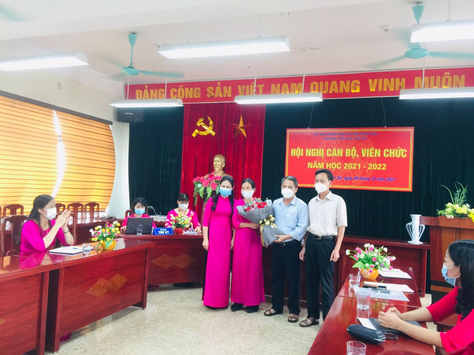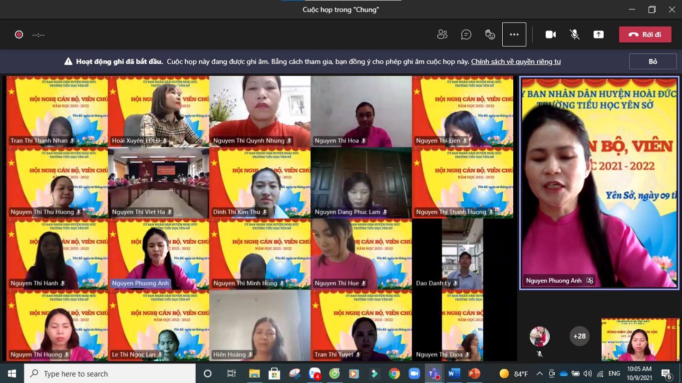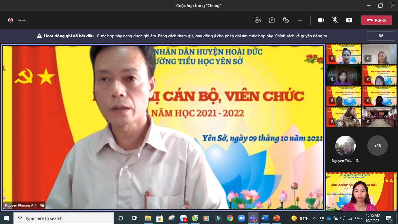 Thực hiện hướng dẫn số 07/HDLT:PGDĐT-LĐLĐ của PGDĐT-LĐLĐ huyện Hoài Đức ngày 13/9/2021 về việc hướng dẫn tổ chức hội nghị cán bộ, viên chức năm học 2021 - 2022, sáng ngày 09/10/2021 trường Tiểu học Yên Sở đã long trọng tổ chức "Hội nghị cán bộ, công chức, viên chức năm học 2021 - 2022" dưới hình thức trực tiếp và trực tuyến.