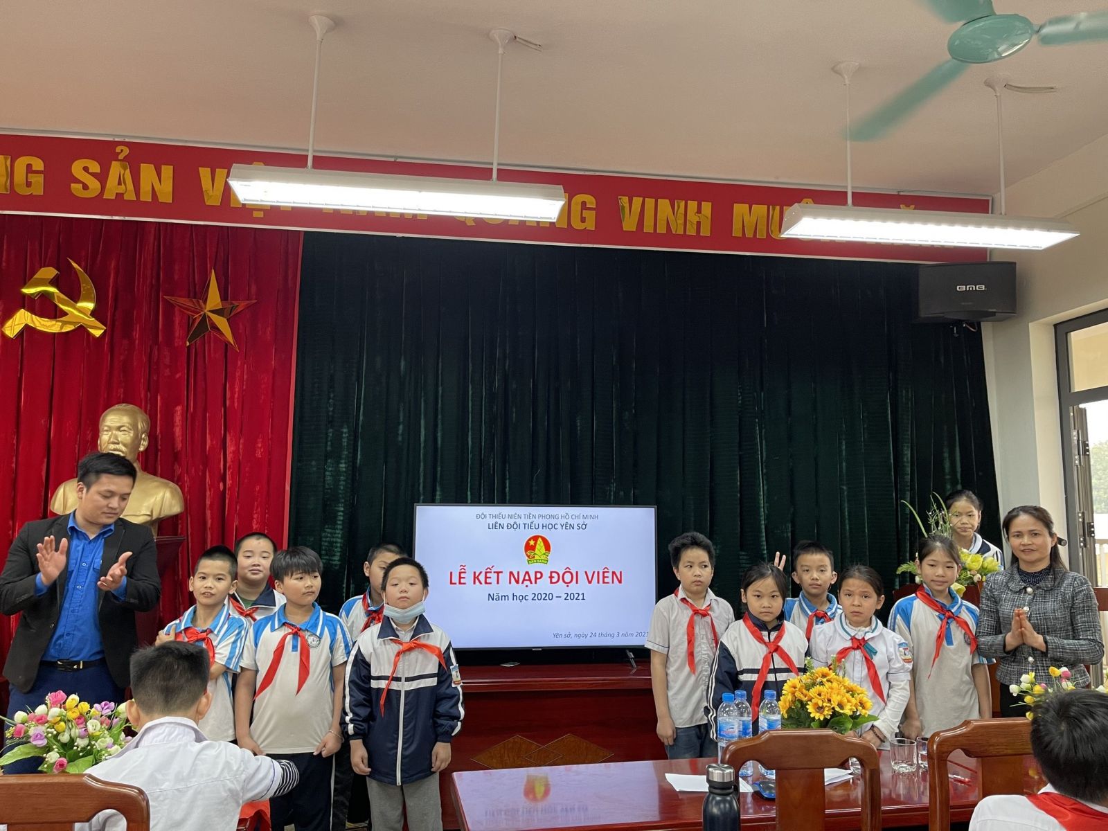 Thực hiện chương trình công tác Đội của Liên đội, được sự nhất trí của Ban giám hiệu nhà trường, chiều 24/3 Liên đội Trường Tiểu học Yên Sở đã long trọng tổ chức Lễ Kết nạp Đội viên mới cho các em nhi đồng có thành tích xuất sắc của khối lớp 3; 4 năm học 2020 - 2021