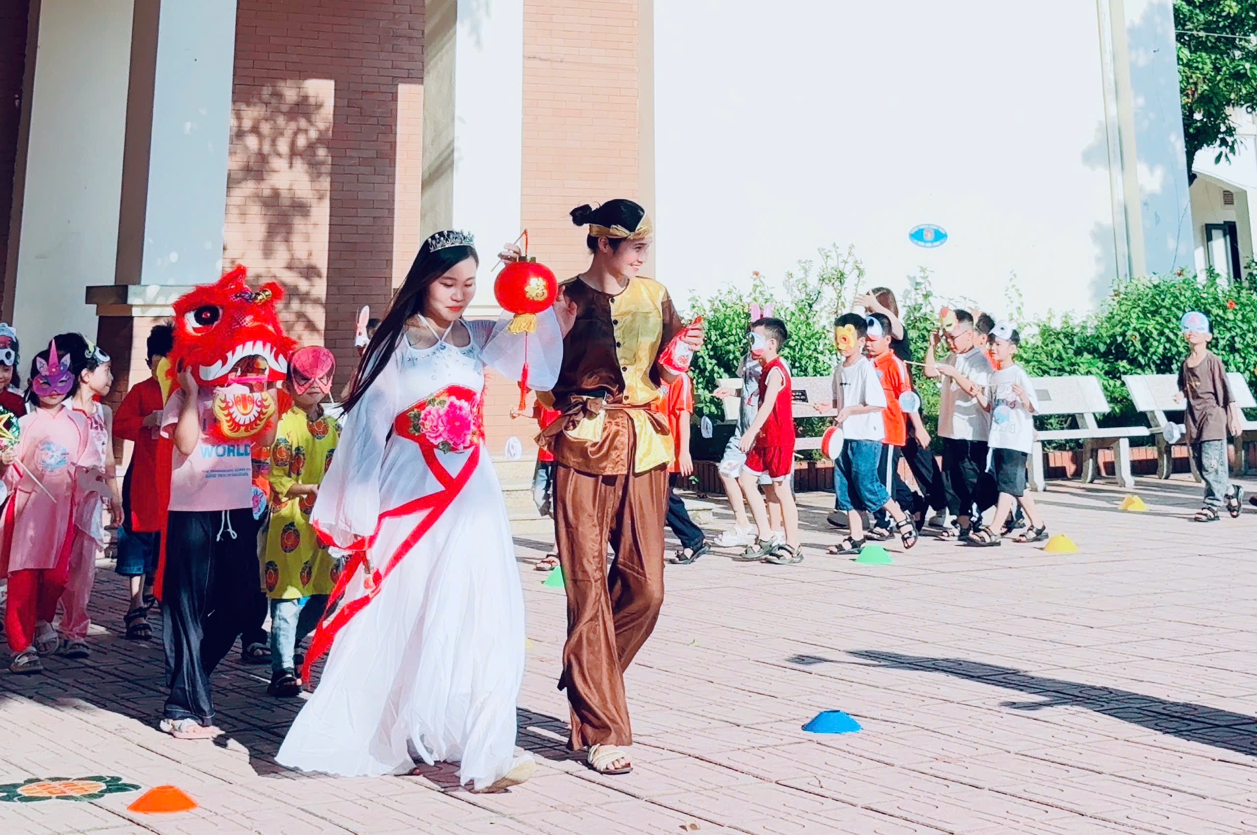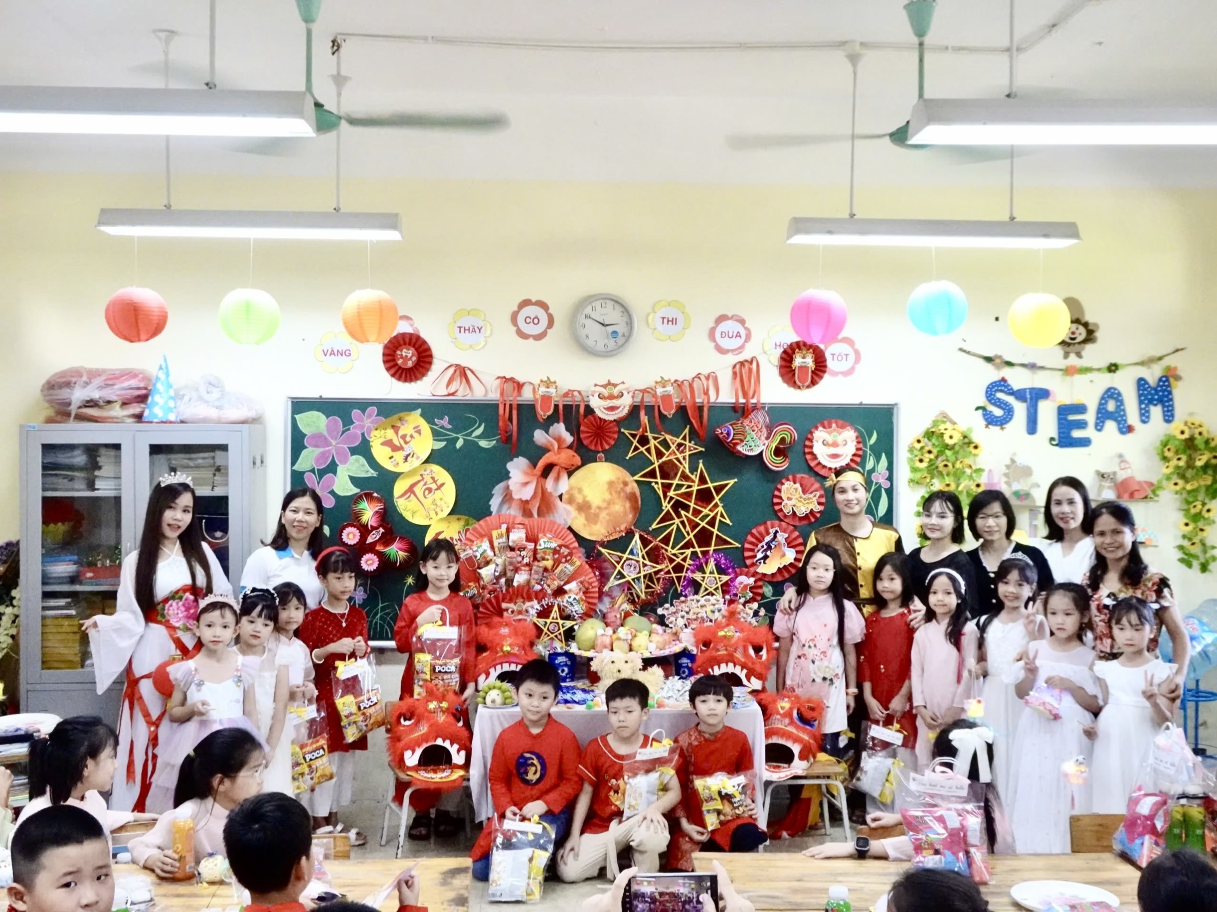 Khép lại buổi vui hội là màn rước đèn, múa sư tử quanh sân trường. Những chiếc đèn lung linh dưới nắng vàng, hòa cùng tiếng trống sư tử rộn rã, tiếng cười giòn tan, đã tạo nên một bầu không khí thật náo nhiệt và vui tươi.