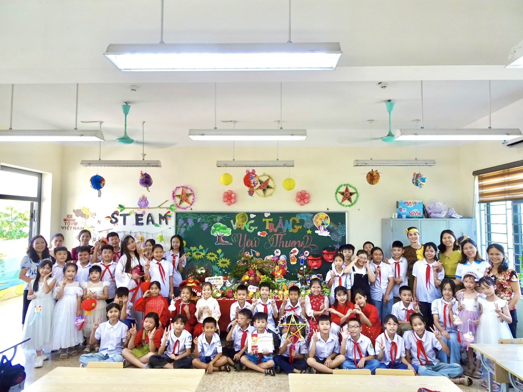 Không khí càng thêm náo nhiệt khi chị Hằng, chú Cuội cùng các bạn Thỏ ngọc xuất hiện. Các em học sinh được chụp ảnh kỉ niệm cùng các nhân vật cổ tích quen thuộc, tham gia phần giao lưu, trả lời câu hỏi nhận quà sôi nổi và hào hứng.