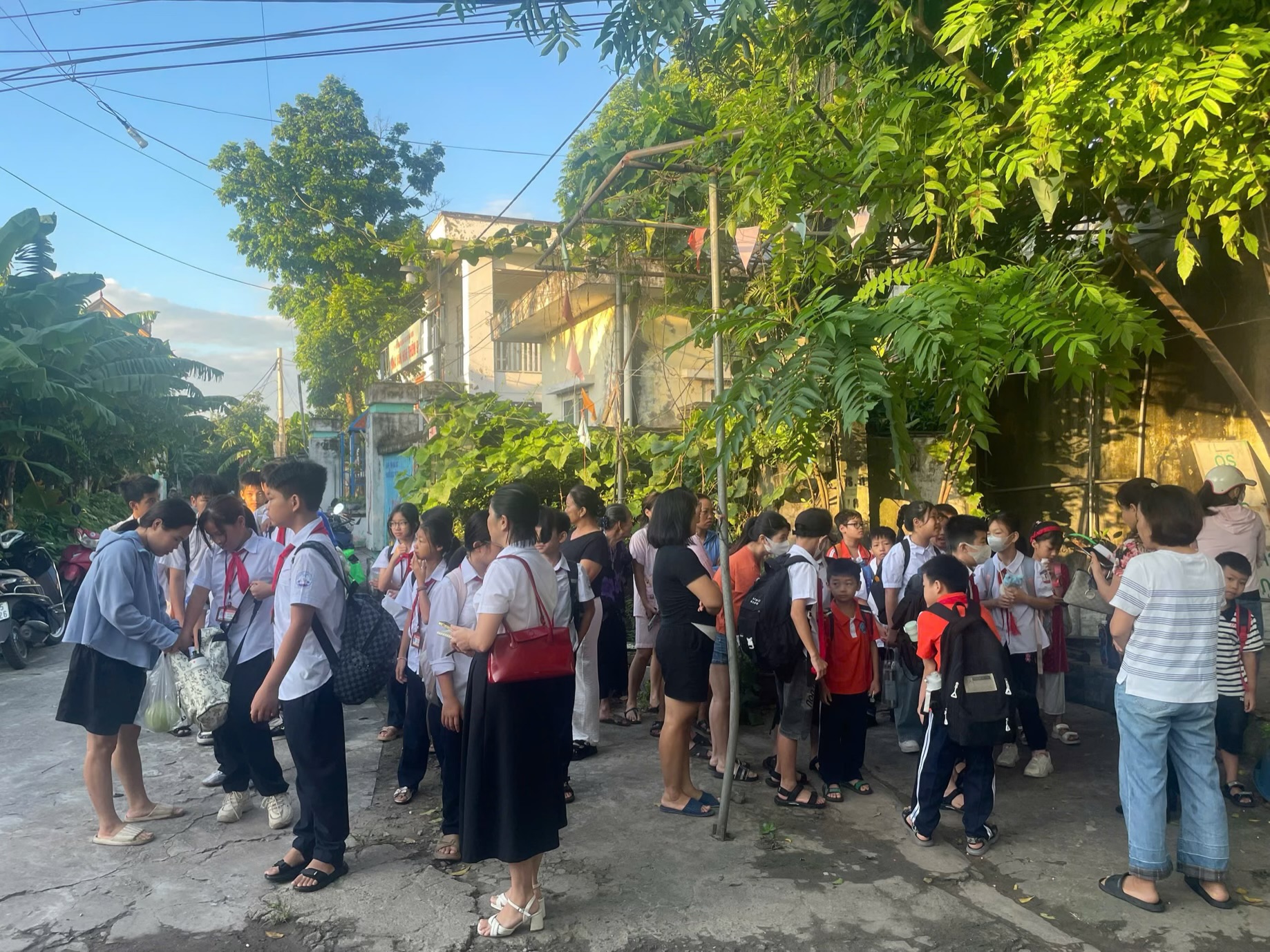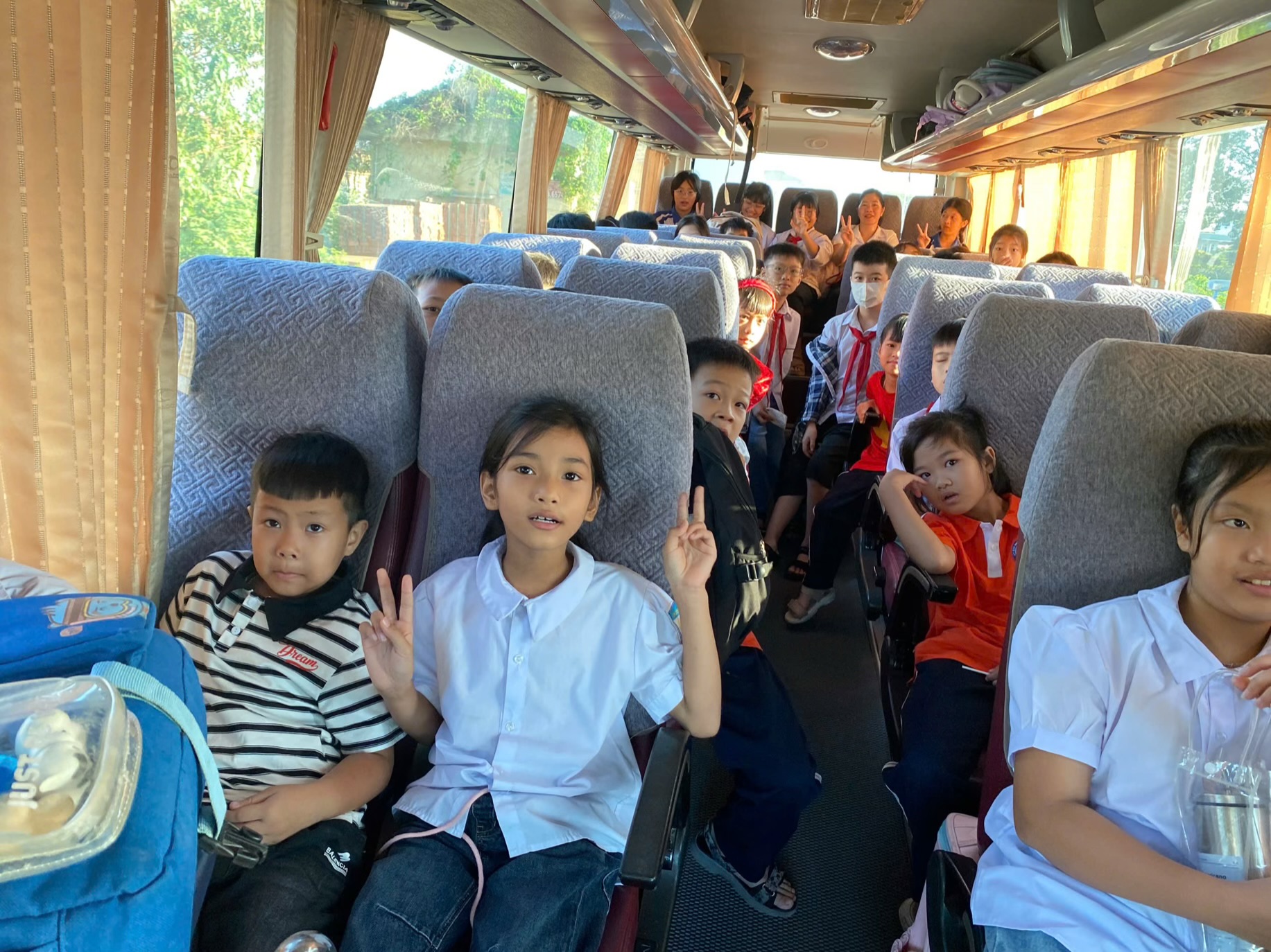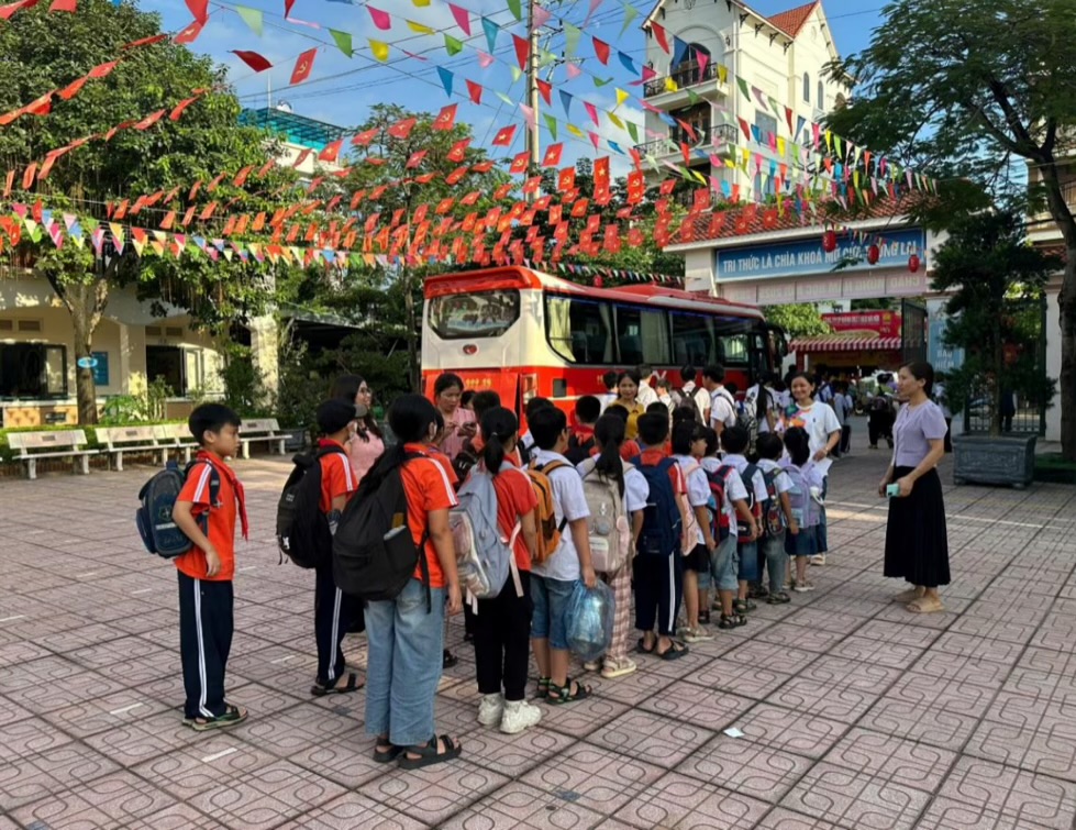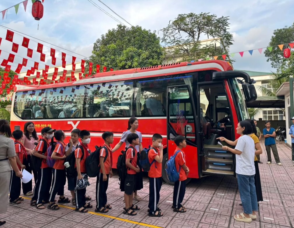 Trước tình hình đó, để kịp thời hỗ trợ và đảm bảo cho học sinh được đến lớp đầy đủ, an toàn, lãnh đạo nhà trường đã chủ động báo cáo với phòng VH-XH xã, phối hợp cùng phụ huynh tổ chức xe ô tô đưa đón học sinh thôn 9 đến