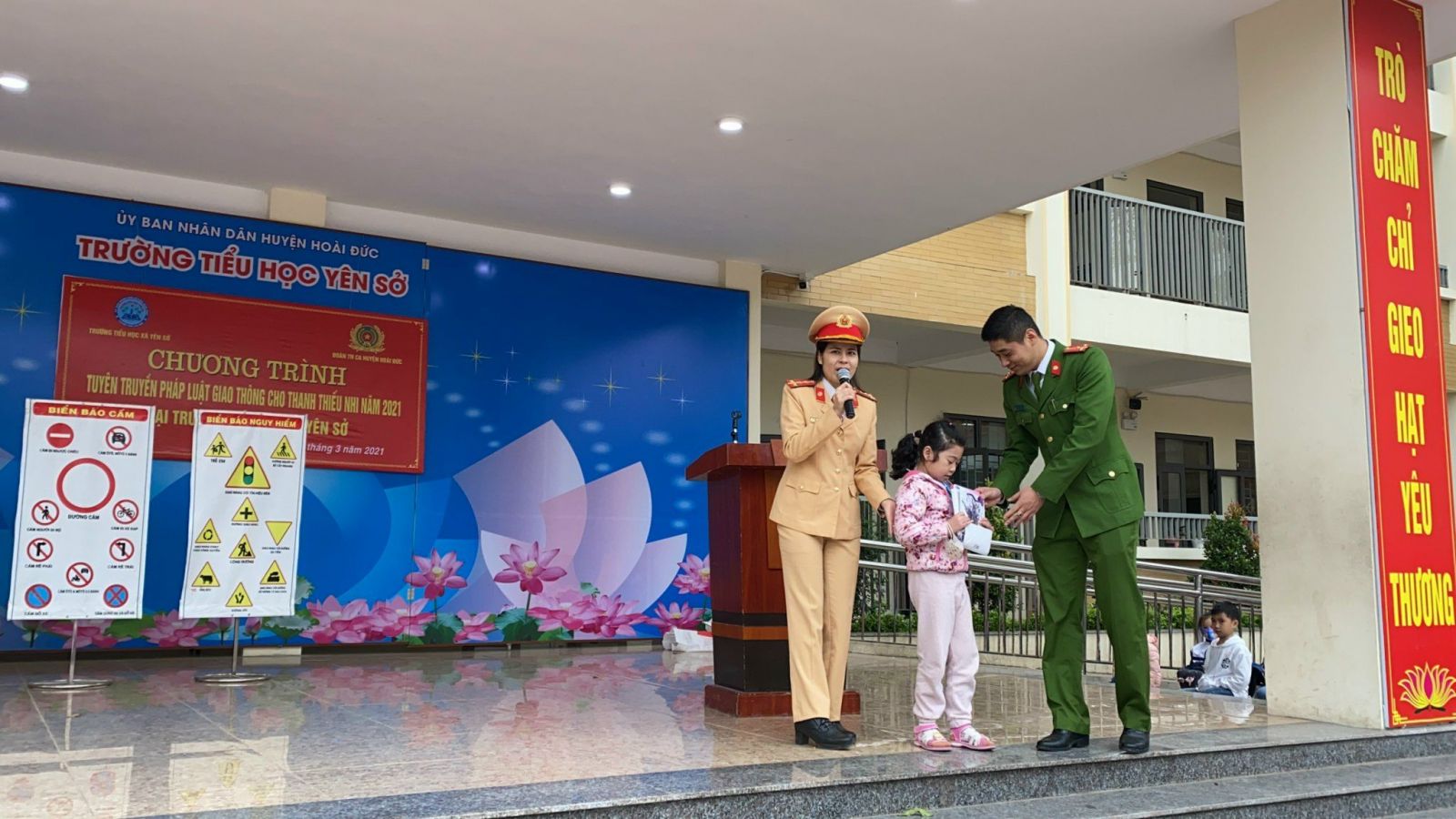 Tại buổi tuyên truyền, Đội CSGT-TT Công an huyện Hoài Đức đã tặng nhiều phần quà cho các em học sinh. Thông qua hoạt động thiết thực, ý nghĩa này, không chỉ mang đến những bài học cụ thể về an toàn giao thông cho các em học sinh; bên cạnh đó, chính các em sẽ lại là những tuyên truyền viên tích cực, giúp những người trong gia đình cùng nâng cao ý thức khi tham gia giao thông, chung tay cùng cộng đồng xây dựng văn hóa giao thông.